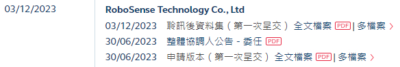 2023年12月3日,来自广东深圳的深圳市速腾聚创科技有限公司的实质控股股东ROBOSENSE TECHNOLOGY CO., LTD(简称"速腾聚创”)在港交所披露聆讯后的招股书,或很快在香港上市,其于2023年6月30日递交招股书。
