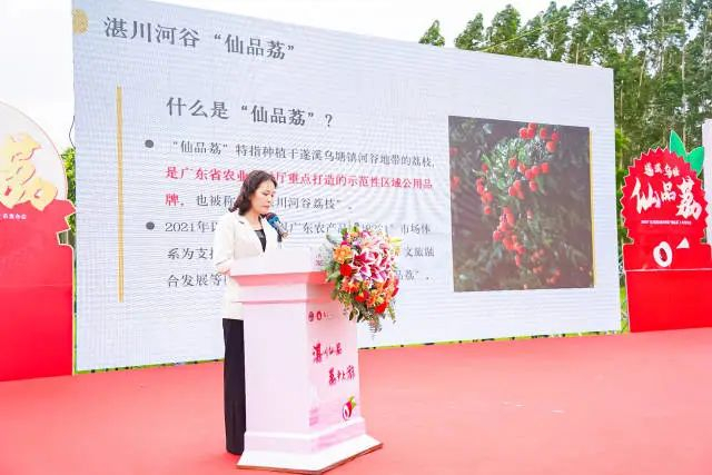 陈连虹在乌塘“仙品荔”品牌推荐会上对“仙品荔”进行介绍。