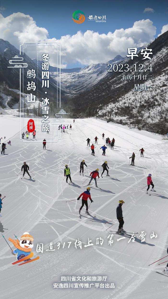 12月4日,星期一。今日安逸四川日历海报“冬游四川”之旅走进鹧鸪山,在茫茫雪场畅快戏雪。