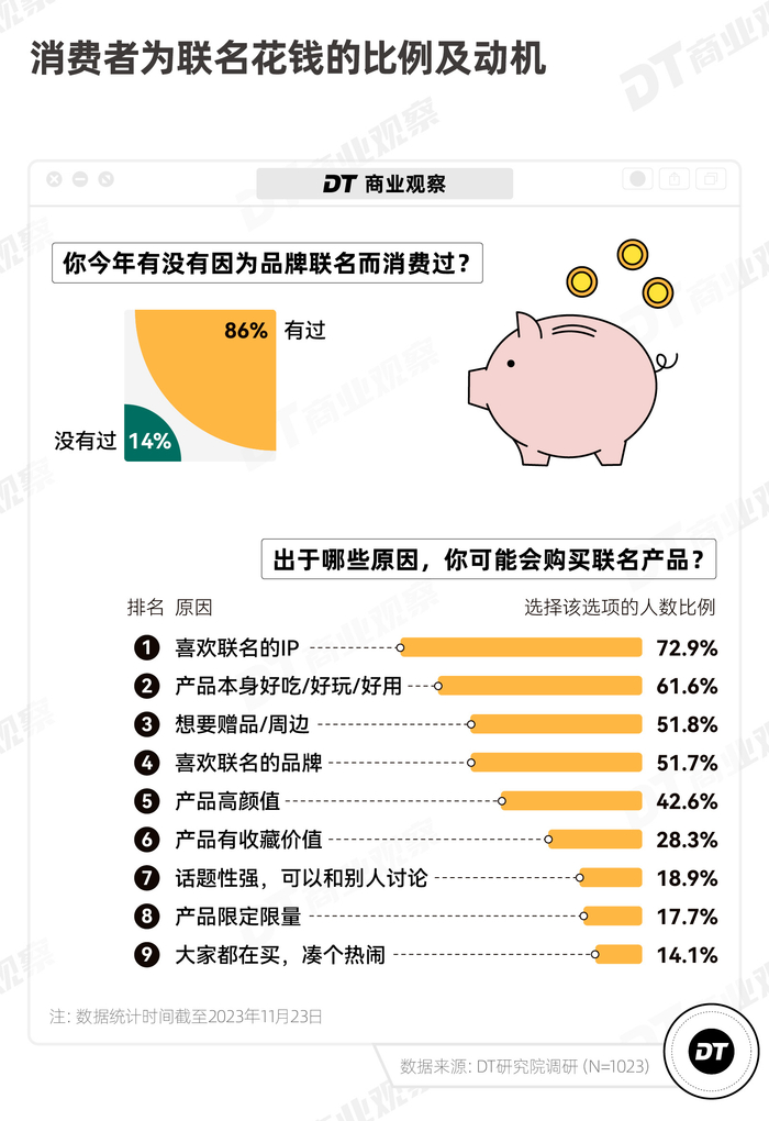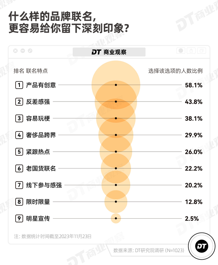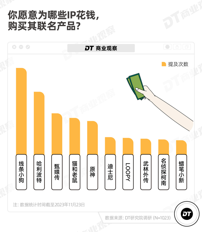 我们好奇,2023年哪些联名被消费者注意到了?大家喜欢什么样的联名,并愿意为哪些IP付费?