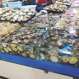 ▲淡村农贸市场销售的鲍鱼肉质肥厚,价格亲民