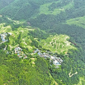 贵州山多地少,林业在带动山区农民增收方面发挥着重要作用。图为被山林包围的榕江县定威乡功贺村。 李长华 摄 (贵州图片库发)