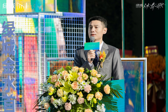 随后, 绿城房地产建设管理集团有限公司珅业平台总经理刘玉明上台致辞,对莅临现场的挚友家人表示真挚的欢迎。通过对绿城进驻“绿城”郑州二十载的深情回顾,缓缓打开这幅由真诚执笔,善意着色,精致勾勒,完美匠呈的理想画卷。