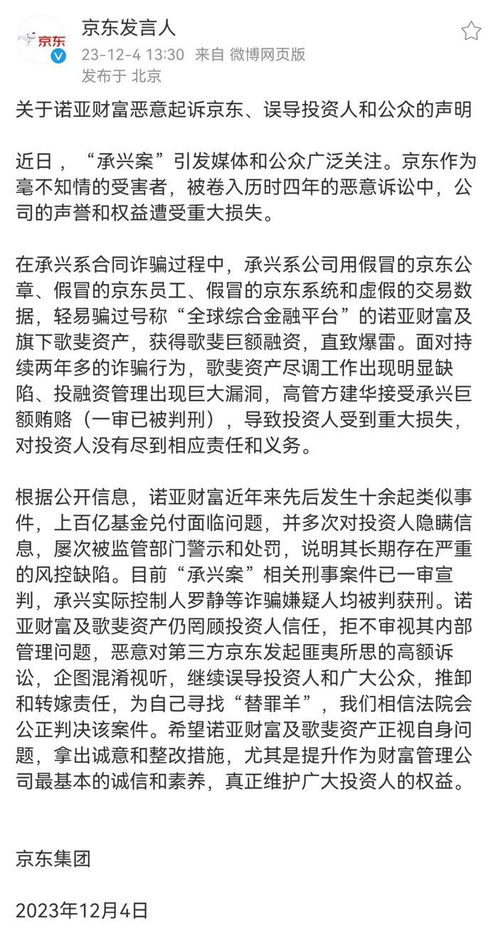 ●近日,“承兴案”引发媒体和公众广泛关注。对此,京东发表声明称,京东作为毫不知情的受害者,被卷入历时四年的恶意诉讼中,公司的声誉和权益遭受重大损失。