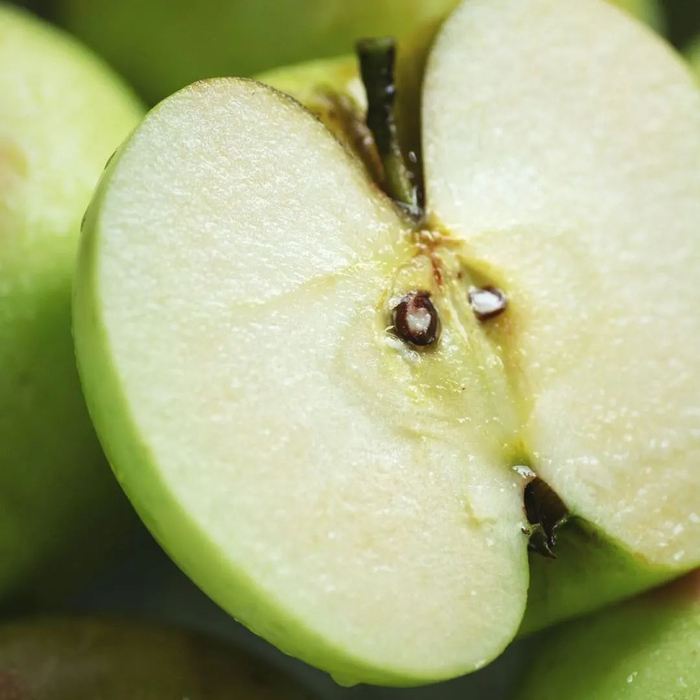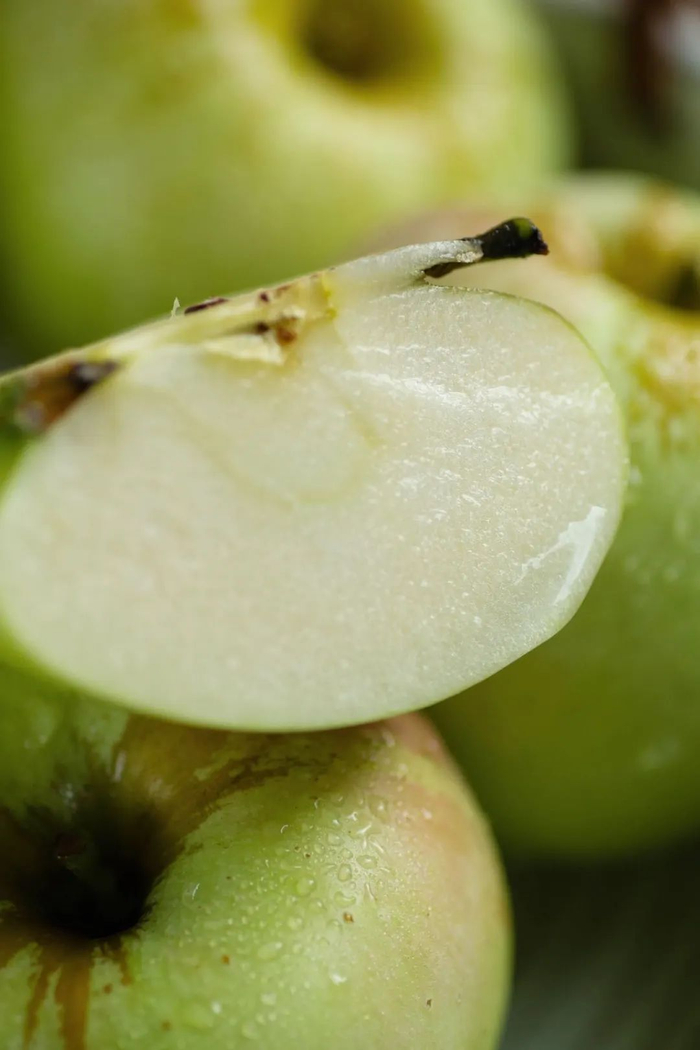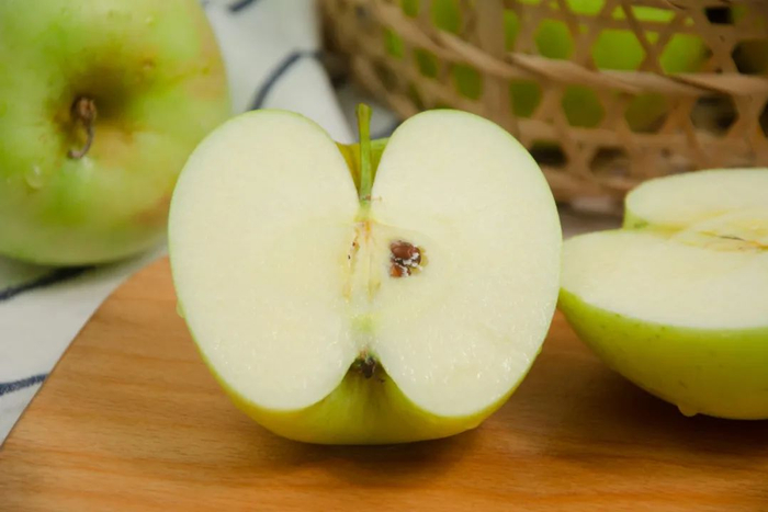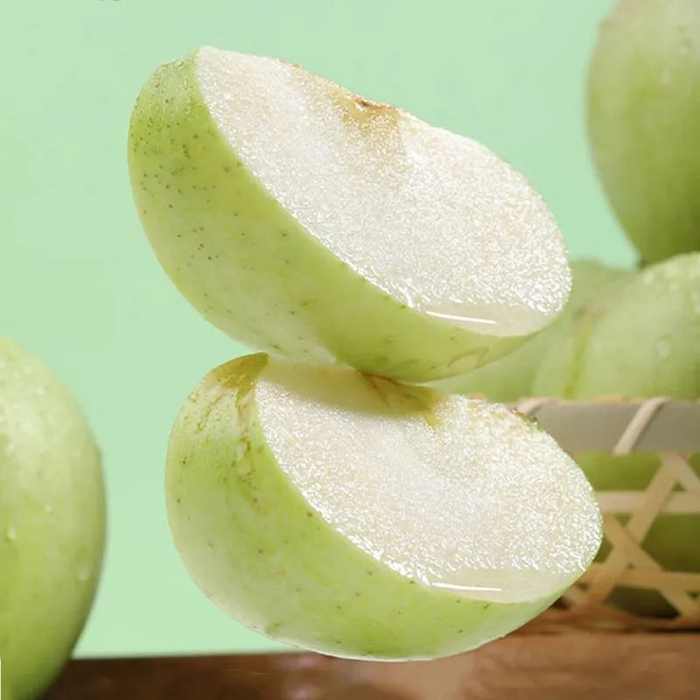 去掉翠绿的外皮,露出乳白的果肉,质地细腻,舌头一压轻松化汁,一口刷新你对青苹果酸涩认知。
