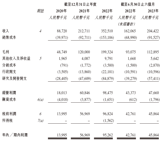 招股书显示,在过去的2020年、2021年、2022年和2023年上半年,贝克微电子的营业收入分别为人民币0.89亿、2.13亿、3.53亿和2.04亿元,相应的净利润分别为人民币1,399.5万、5,696.9万、9,526.2万和4586.4万元。