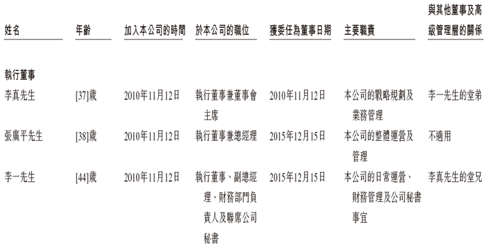 高管包括执行董事兼董事长李真先生,执行董事兼总经理张广平先生,执行董事、副总经理、财务部门负责人兼联席公司秘书兼李一先生。