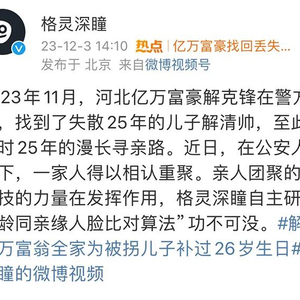 热搜!亿万富豪找回丢失25年儿子,上市公司格灵深瞳领功