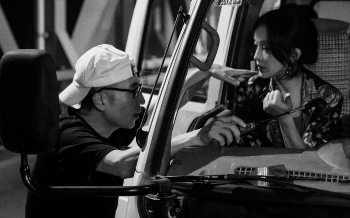 ·周迅与导演曹保平在《涉过愤怒的海》拍摄现场。