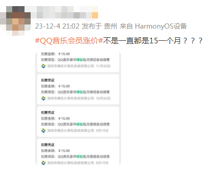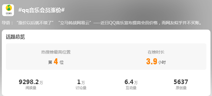 此举引发网友广泛讨论,#QQ音乐涨价#相关话题冲上热搜。