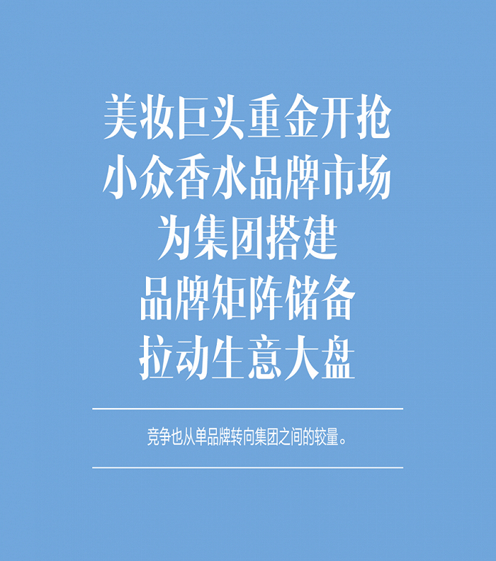 敏锐洞察到趋势的美妆巨头近年来也不惜重金开抢小众香水品牌,为集团在香水赛道搭建品牌矩阵储备,最大限度捕捉和满足多元化的消费需求,拉动生意大盘的增长。