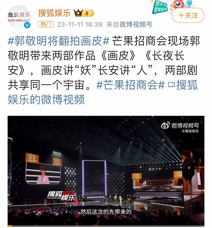 郭敬明这边,由于《云之羽》路透炒得飞起,其个人风评早在2023年初就出现好转,年内连官宣带网传、与之有关的新剧项目共有5部。分别为暑期档开始流传的《伪宋杀手日志》,《云之羽》播出后开拍的《大梦归离》,概念海报中显示由最世文化“联合呈现”的《解甲》,以及郭敬明现身芒果招商会、亲自发布的《画皮》与《长夜长安》。