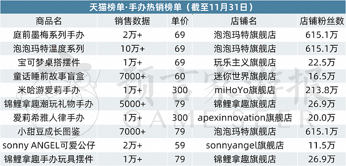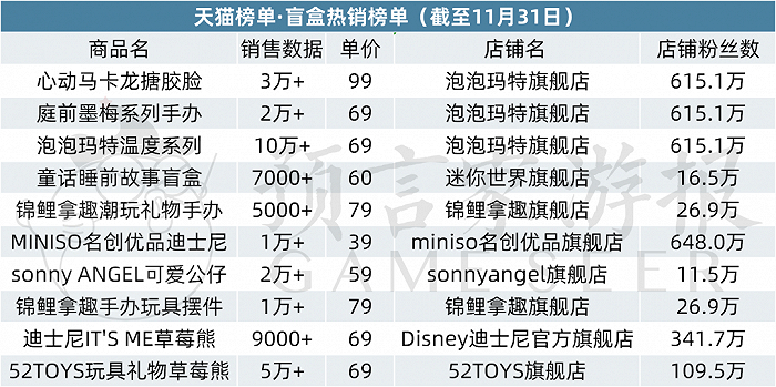 首先来看本月的天猫盲盒热销榜。