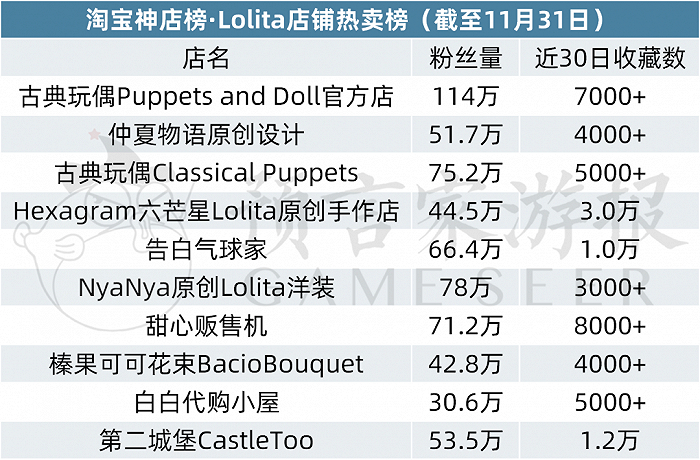 本月Lolita店铺热卖榜中,古典玩偶Puppets and Doll官方店升至第一,横扫上个月的颓势;古典玩偶Classical Puppets空降拿下第三的位置,店铺近30日收藏数突破五千。