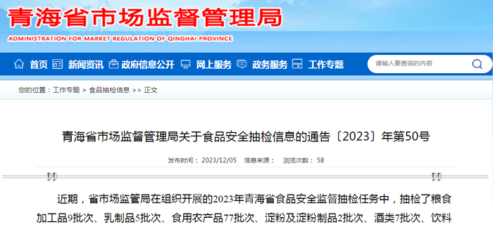 青海省市场监督管理局关于食品安全抽检信息的通告〔2023〕年第50号