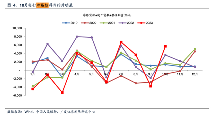 部分数据也可印证。根据广发证券统计,10月,银行冲贷款科目抬升明显。非银贷款、境外贷款、票据融资较往年同期有显著增长。