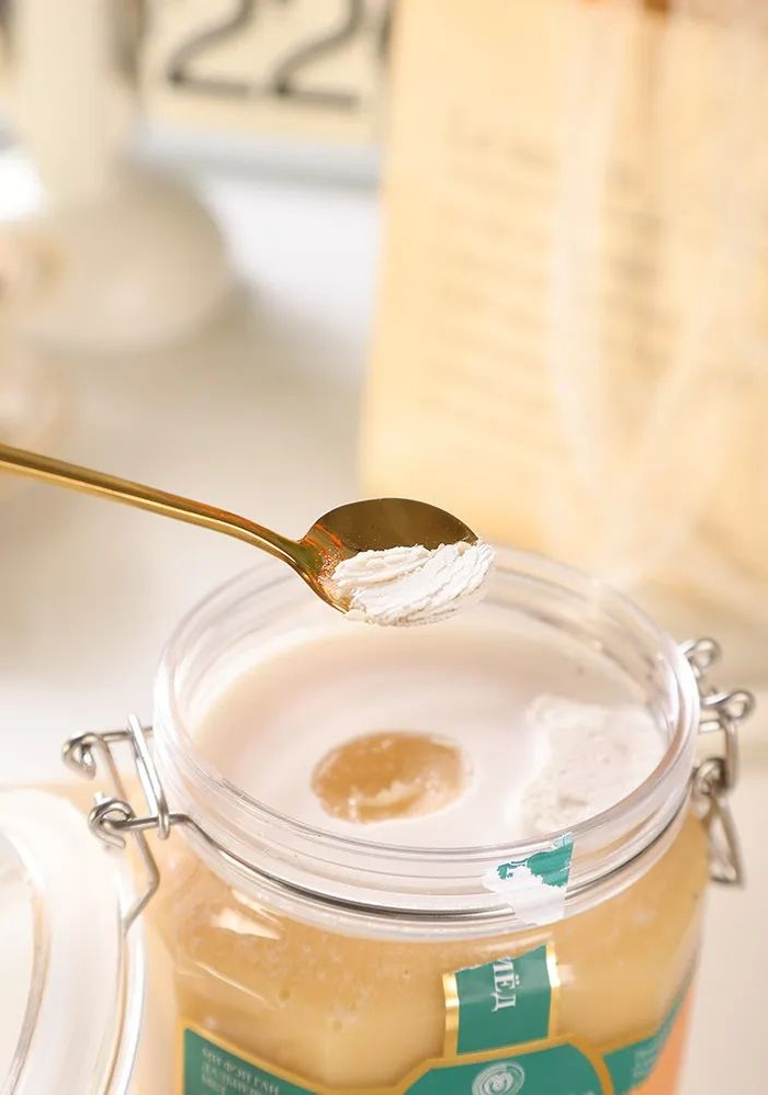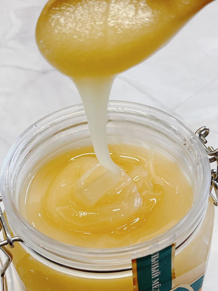 是的,和国内蜂蜜不同,俄罗斯蜂蜜看起来更像是冰激淋,甜蜜如丝,色泽透亮奶白,相当治愈~