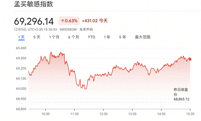 截至12月5日收盘,在金融股和能源股上涨的带动下,印度SENSEX30指数上涨0.63%至69296.14点,连续第二日创下历史新高。印度Nifty50指数收涨0.81%至20855.10点,同样连续第二日创历史新高。