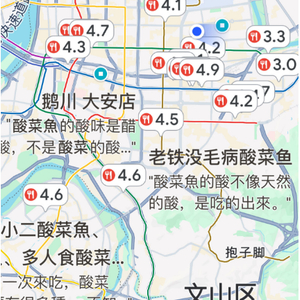 △ 搜索台北市地图“酸菜鱼”,随处可见相关美食店