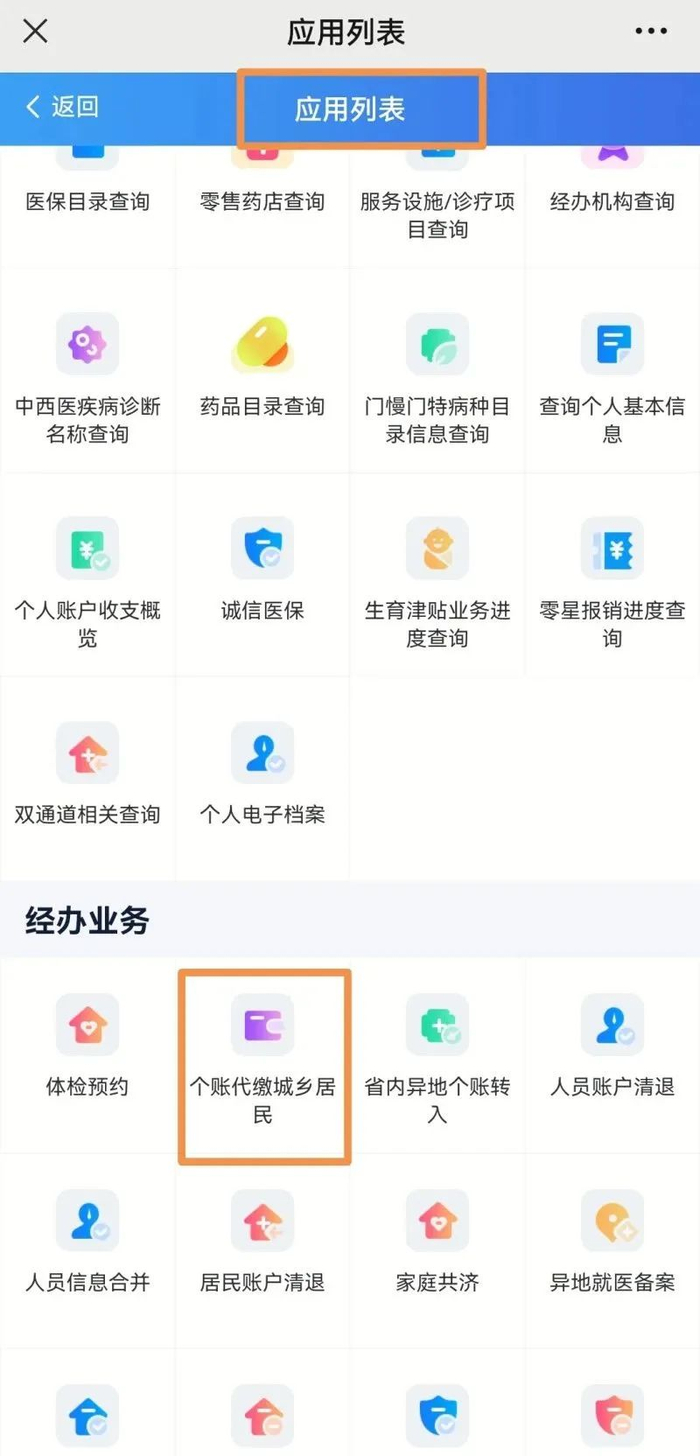在“湘医保服务平台”申请“家庭共济”绑定家庭成员后,待个人“记账户”资金累积到380元后,可为共济对象代缴居民医保费。点击“湘医保服务平台”业务办理版块的“个账代缴城乡居民”,按照相关提示完成代缴。目前暂不支持跨统筹区代缴。