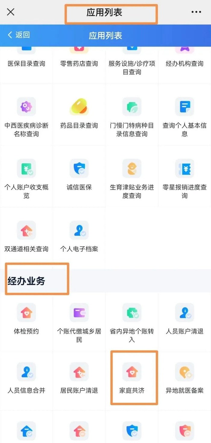 在“湘医保服务平台”申请“家庭共济”绑定家庭成员后,“记账户”资金可由共济对象使用。使用时展示共济对象的医保码,结算时优先使用授权参保人的“记账户”资金,不足部分再通过现金或微信、支付宝补足。目前暂不支持跨统筹区共济使用。