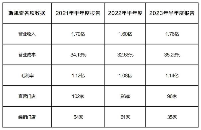 《消费者报道》从ST奥康(603001.SH)近三年的半年报获悉,斯凯奇的营业收入、营业成本、毛利率均没有明显变动。但2023年半年度末的经销门店相交去年同期大幅减少了26家。