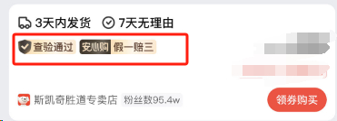记者在识货APP上注意到,“斯凯奇胜道专卖店”标示为“查验通过”“安心购假一赔三”。