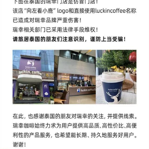 ▲瑞幸咖啡2022年发声明称泰国门店为仿冒