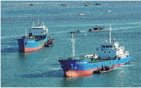 荣成是我国北方最大的鲍鱼养殖基地,12月2日,荣成市俚岛镇俚岛湾海域一派繁忙景象,养殖工人将南下“越冬”的鲍鱼装船,运往福建海域继续养殖。此前,11月21日,荣成爱伦湾鲍鱼养殖区已将5000多万头鲍鱼运往福建“越冬”,等到来年5月,再接回来“避暑”。截至目前,荣成南迁“过冬”的鲍鱼已近两亿头。