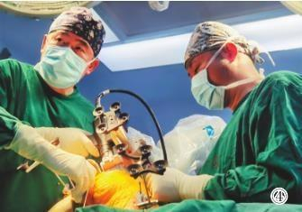④成功实施机器人辅助下膝关节单髁表面置换术。
