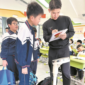 12月5日,海实行政老师抽检了四年级1班全体同学的书包,发现4名同学的书包超重,其中3个书包重达10斤。于是,4名书包的小主人收到了“书包超重整改建议书”。建议书上标注了书包超重的原因,包括书包自重过重、装了与学习无关的物品等。4名学生接过“整改书”,表示将好好清理书包,不让书包成为自己的“小负担”。