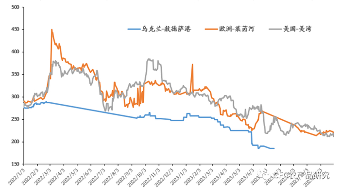“奖入限出”的有限全球化时期,农产品出口国的贸易政策改变将迅速冲击全球的贸易流,那么能快速组织运力,缓和全球贸易流结构性矛盾的供应链服务商迎来了红利期。突出的例子是,俄乌冲突升级,人道主义粮食运送通道中断后,物流服务商快速通过扩展新的物流路线——从乌克兰经内陆运输到罗马尼亚,再经由多瑙河通往波罗的海,但紧缺的运力一定自带溢价,这个过程中乌克兰种植者不惜以大幅折价为代价保证出口,2023年乌克兰玉米,葵花油等农产品一度成为全球价格的洼地,不言自明地存在从种植主体向物流主体转移利润的过程。