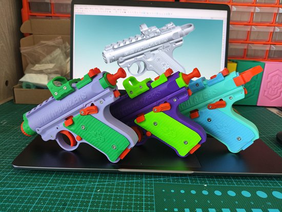 “无名业火”并不排斥“萝卜枪”这个自带流量的新名字,事实上,被盗版的这支玩具枪的结构,他已经开源了95%,“剩下核心的5%其实也可以通过测绘拿到”。