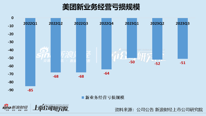 增速放缓,新业务的减亏效果或也不及预期。从经营净利润而言,2023年Q3新业务经营利润亏损51.12亿元,虽说经营亏损较去年同期有所收窄,但减亏效果不及预期,这或主要因为核心新业务——美团优选。