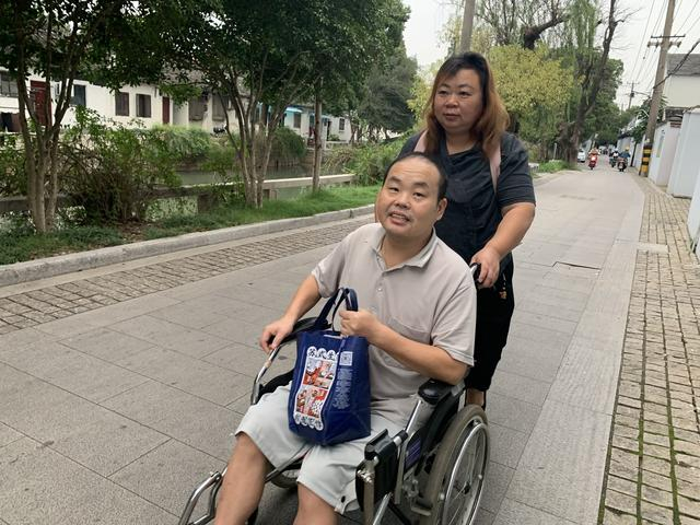 闵国飞推着吴一疆去医院给女儿送晚饭。