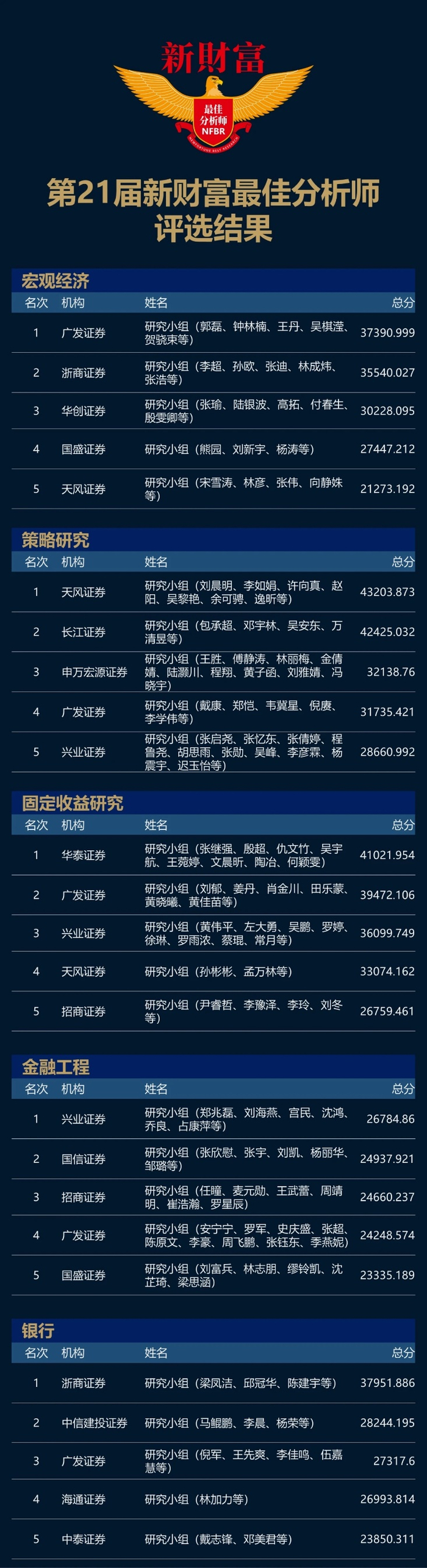 2023新财富最佳分析师榜单揭晓:新出炉6位白金分析师,长江、广发成大赢家
