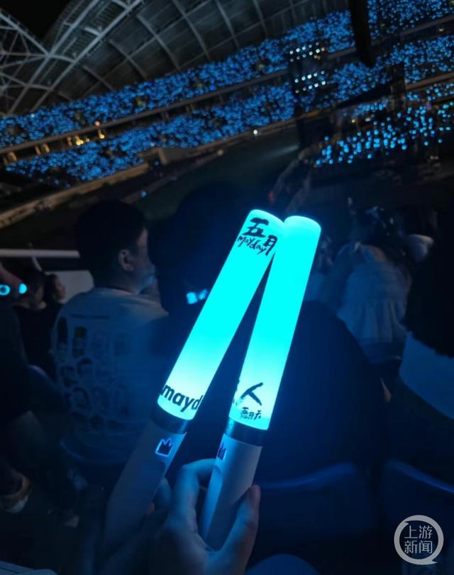 今年7月,潮新闻记者曾前往全球最大的文体产业用品展销基地——义乌国际商贸城了解荧光棒等演出和赛事的周边产品的展销情况。在一篇《五月天演唱会荧光棒140元一根 义乌为啥没有将价格“打下来”?》的报道中,有老板介绍,最早期的荧光棒内层是过氧化物、荧光染料等化学品,成本只要几毛钱。如今普通能发光的荧光棒,批发价在2-3元,搭配的纽扣电池保证荧光棒能亮10多个小时。但像五月天这样定制版的控场荧光棒,价格就要高出很多。“具有场控功能,更接近于一款电子产品,一般需要定制出货,价格在30到50元不等,义乌很少有经营户会接到这样的订单。”