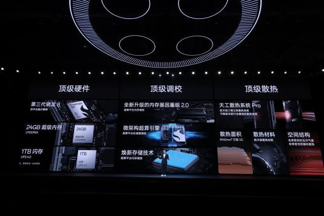 一加12搭载第三代骁龙8移动平台,性能比上代提升30%、功耗降低20%。一加12全系12GB起步,最高提供24GB+1TB双奢组合。