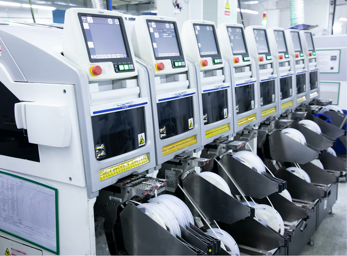 上图为SMT贴片机、AOI(自动光学检测机) 和 X-Ray检测设备