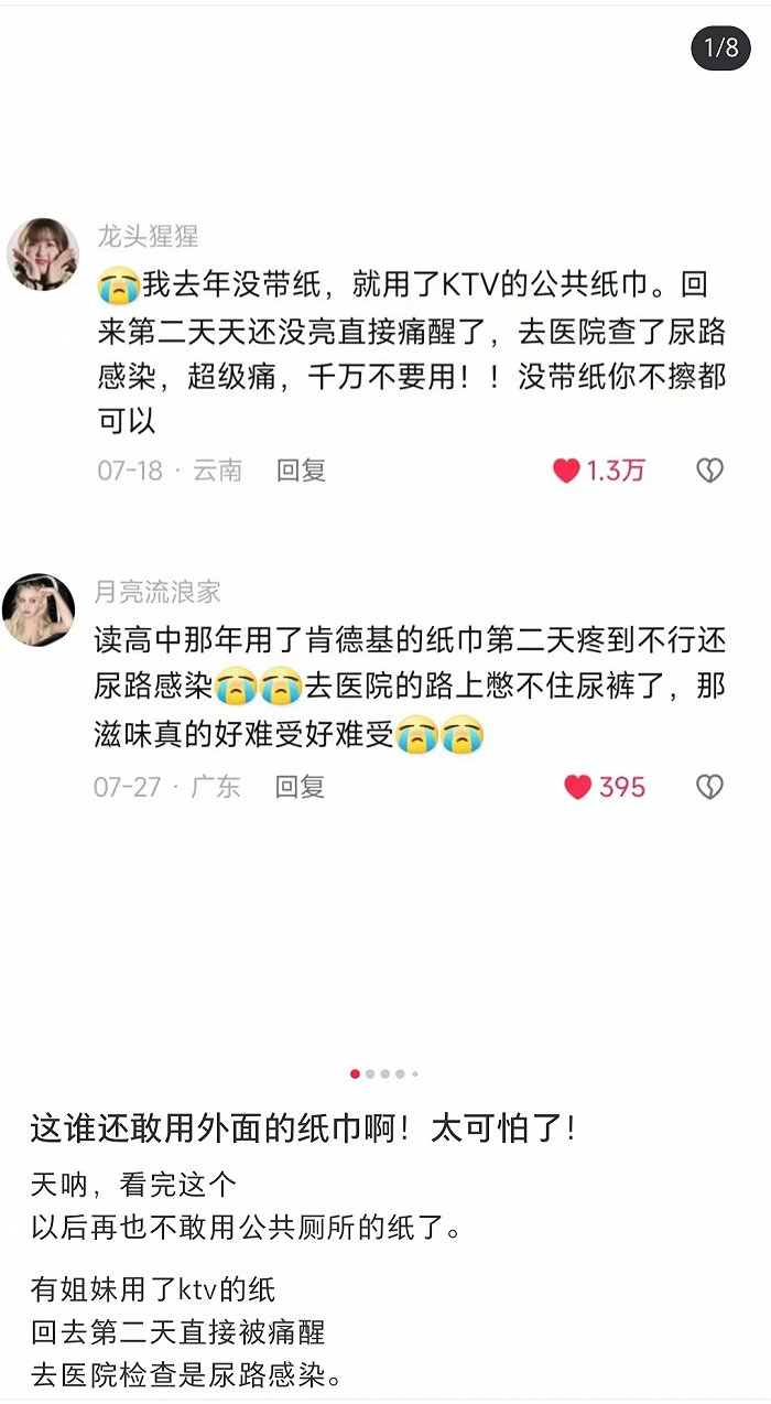 但这还是引起了不少网友的恐慌,表示不敢使用公共厕所的卫生纸。