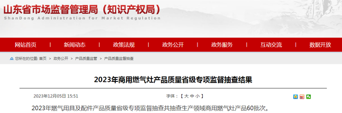 2023年山东省商用燃气灶产品质量省级专项监督抽查结果