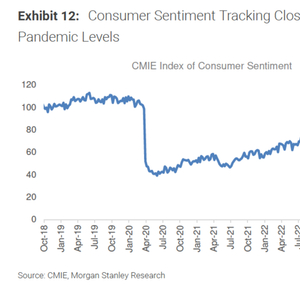 摩根士丹利分析师直言,印度内需一直维持稳定增速是他们对经济前景始终保持乐观的主要驱动力,其中消费占印度GDP的60.6%,是需求的支柱,但从当前的情况来看,尽管私人消费增速已接近疫情前水平,但前景喜忧参半: