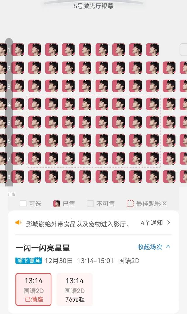 尽管也有人对于突飞猛进的预售票房提出“注水”质疑,但在李女士看来,大部分票房还是可信的,“我从来没在一天接到过那么多电话咨询同一部影片,暑期档之后,影院有好几个月没这么热闹了。”她发现,近期来影院咨询的都以《一闪一闪亮星星》的剧粉为主,“听说在影厅里下雪这个提议还是剧粉提的,后来被片方采纳。”