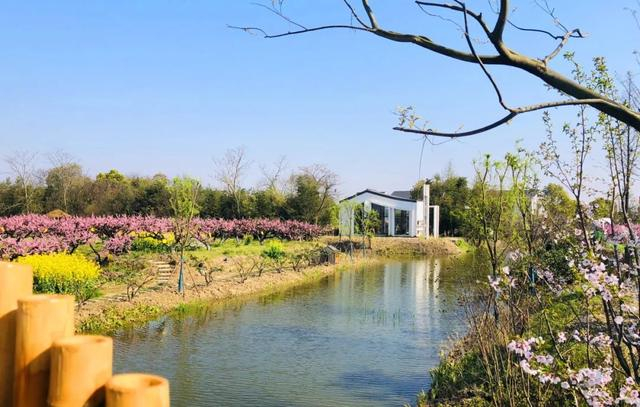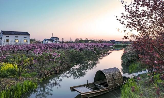 吴房村位于奉贤区青村镇西南部,整体风貌设计源于“桃源吴房十景图”,春日里,万亩桃花竞相开放,一条条村沟宅河串联起白墙黛瓦和姹紫嫣红,清澈见底的河水和粉嫩娇艳的桃花绘就一幅世外桃源般的乡村画卷。