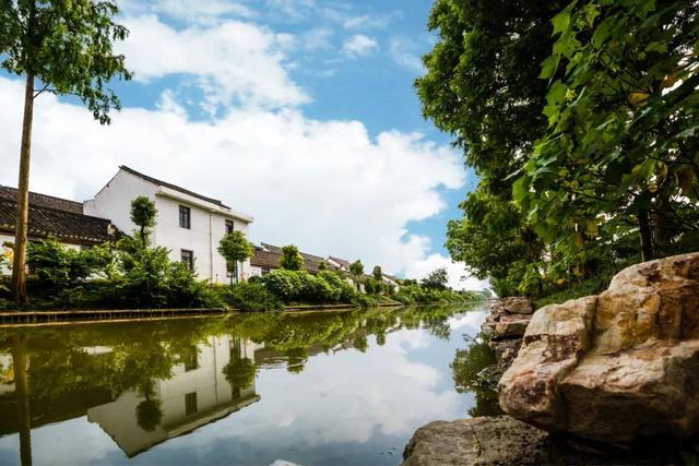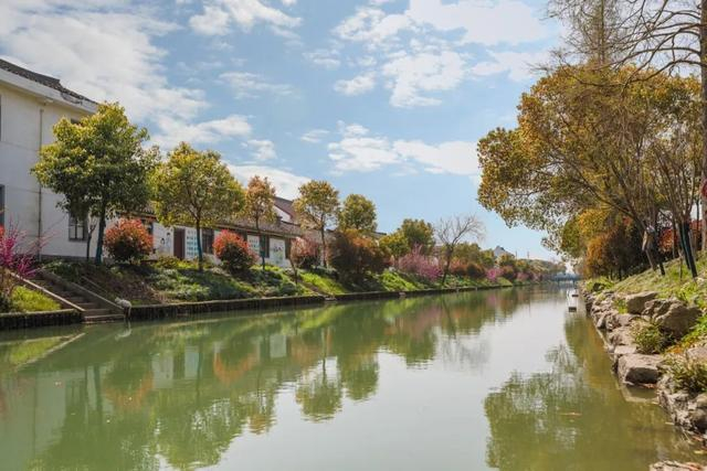 接龙港位于奉贤区南桥镇六墩村,呈东西走向,是连通六墩村水系的重要河道之一。沿岸灰白相间的新建江南建筑、樱花公园、六墩公园与河道交相呼应,营造出秀美隽丽的水岸风景。