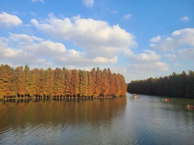 海湾百鸟湖位于海湾国家森林公园内,秋冬之际,高耸的红杉密布在湖面两旁,树影婆娑、水木相连,泛舟湖上仿佛人在画中游,红绿叠影层林尽染的独特美景一览无余。