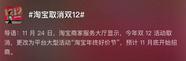前不久,#淘宝取消双12#这一话题冲上热搜,引起了网友们的广泛关注。