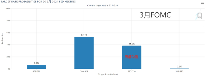 按照日程,美联储将在2024年的1月、3月、5月、6月、7月、9月、11月和12月共举行8次FOMC会议。目前的联邦基金利率目标区间为5.25%-5.50%。