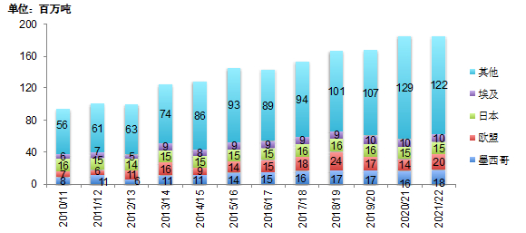 欧盟、墨西哥、日本和埃及是主要进口国家和地区