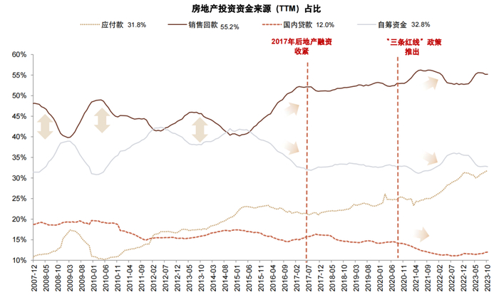 图表:住房销售回款仍是房企最大的资金来源,占比超过一半